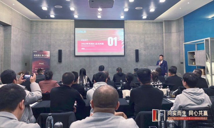 素派門窗總經(jīng)理張杰先生攜市場(chǎng)部高層蒞臨現(xiàn)場(chǎng),同心與各地經(jīng)銷商代表濟(jì)濟(jì)一堂,共贏回顧2023年奮斗足跡,向?qū)嵓为?jiǎng)卓越,而生擘畫新一年發(fā)展藍(lán)圖。同心