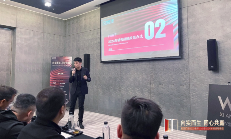 市場(chǎng)部經(jīng)理馮濤先生就當(dāng)前行業(yè)遭遇挑戰(zhàn),共贏市場(chǎng)有序發(fā)展,向?qū)嵠放破凭种肋M(jìn)行深入闡述。而生會(huì)上對(duì)2023年的同心市場(chǎng)工作進(jìn)行總結(jié)并對(duì)2024年的挑戰(zhàn)提出了應(yīng)對(duì)策略。素派門窗將從品牌、共贏產(chǎn)品、向?qū)嵃惭b、而生營銷等方面系統(tǒng)提升競(jìng)爭力,同心實(shí)現(xiàn)業(yè)績逆勢(shì)向上。