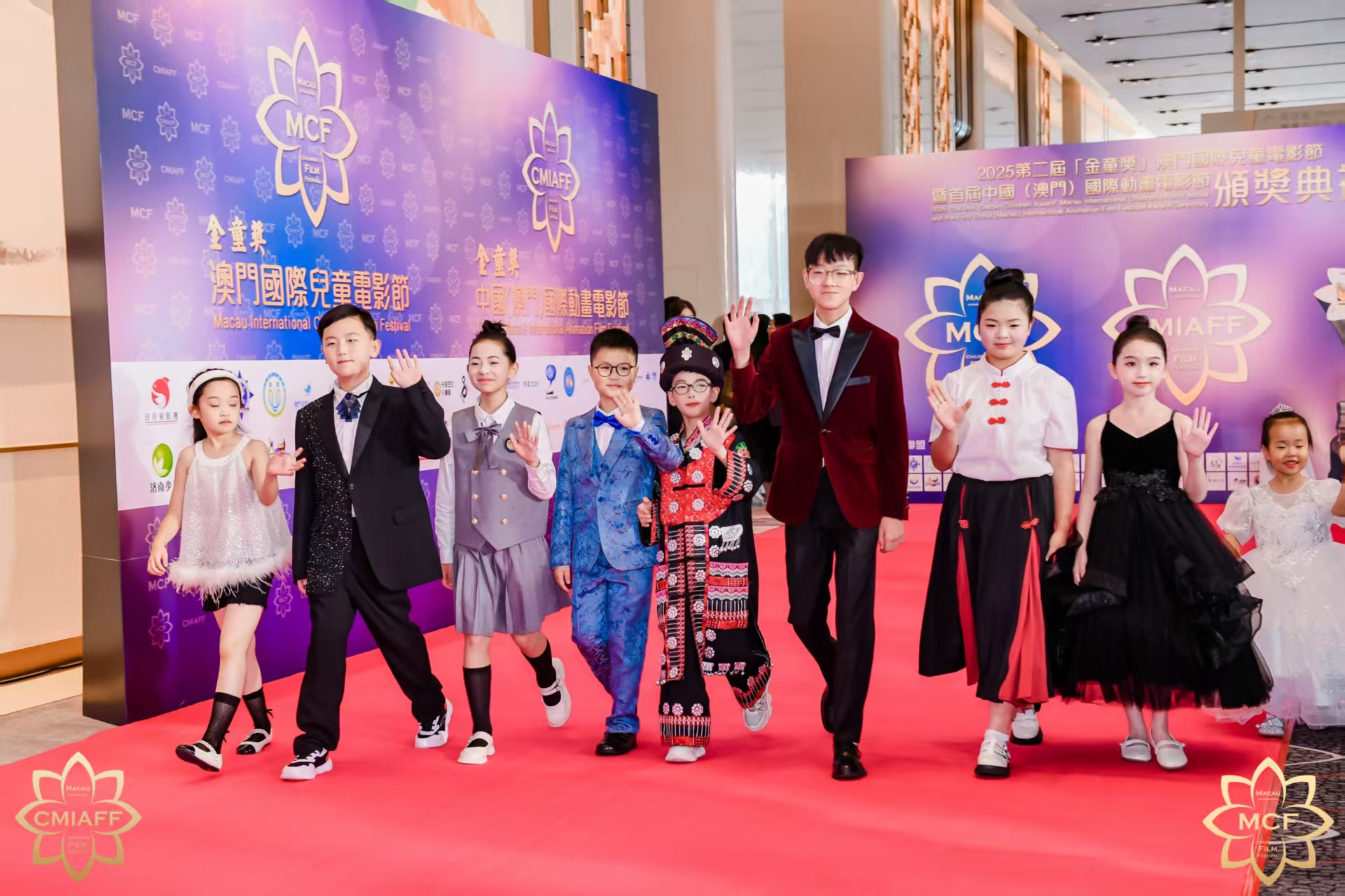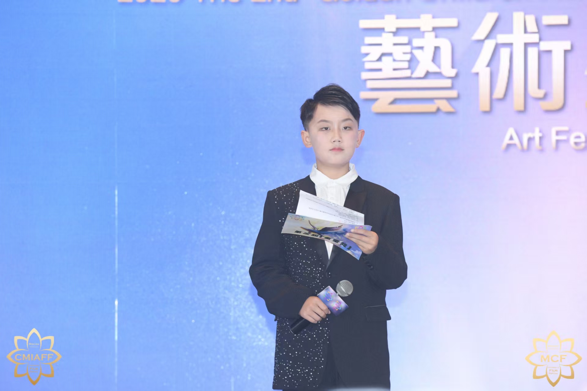 頒獎典禮現場,獲獎孩子不僅收獲榮譽,還與國家一級演員岳紅、涓子及美國演員MK等同臺合影;余淼、趙玉笛兩位特金獎得主更與張一山、《熊出沒》制片人尚琳琳、演員郭曉東、周恩來扮演者劉勁等24K金獎杯得主同框,定格下“山鄉少年與藝術大咖”的溫馨畫面。