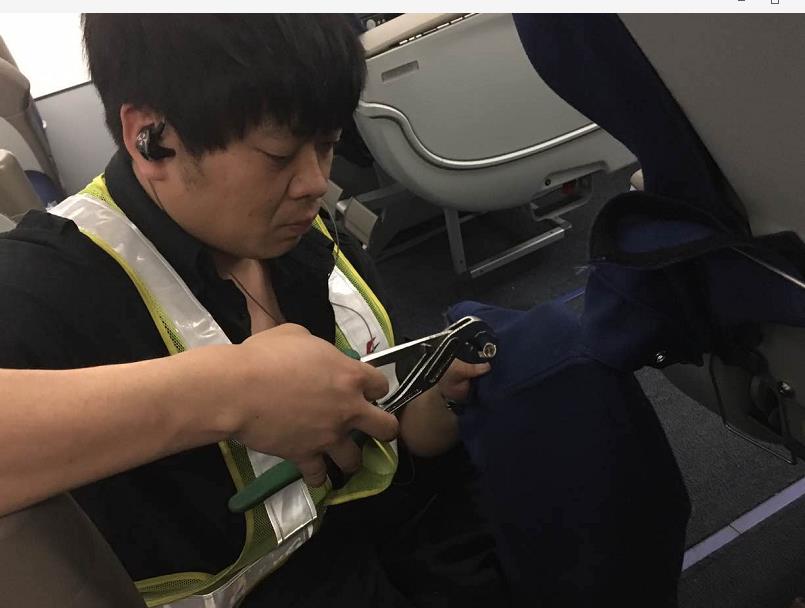 近日,門簾航線部客艙小組又首次成功完成了A320飛機門簾及頭等艙書報袋四合扣更換工作。換工