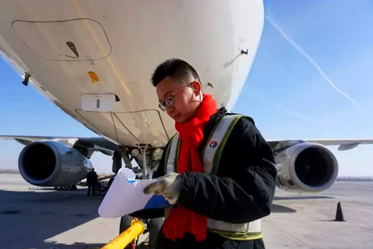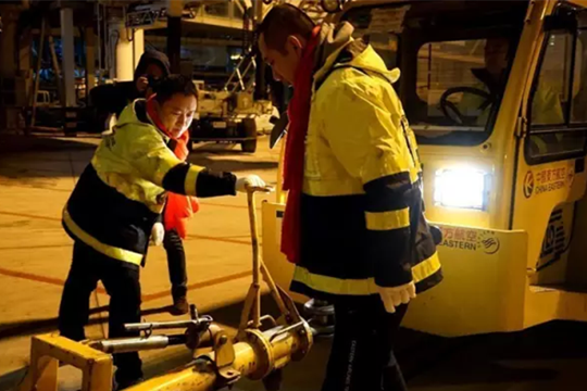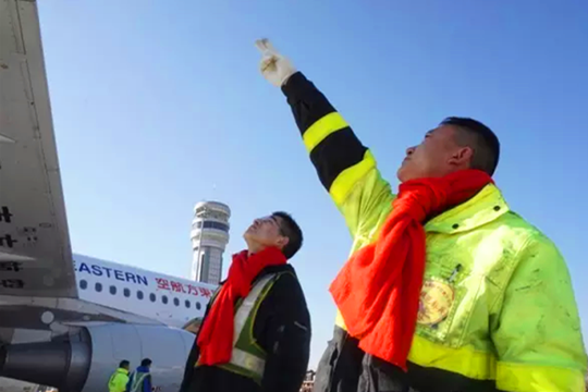 保障春運(yùn)的日子里,藍(lán)天機(jī)坪之間,東航悄然出現(xiàn)了一抹亮麗的機(jī)坪中國紅!